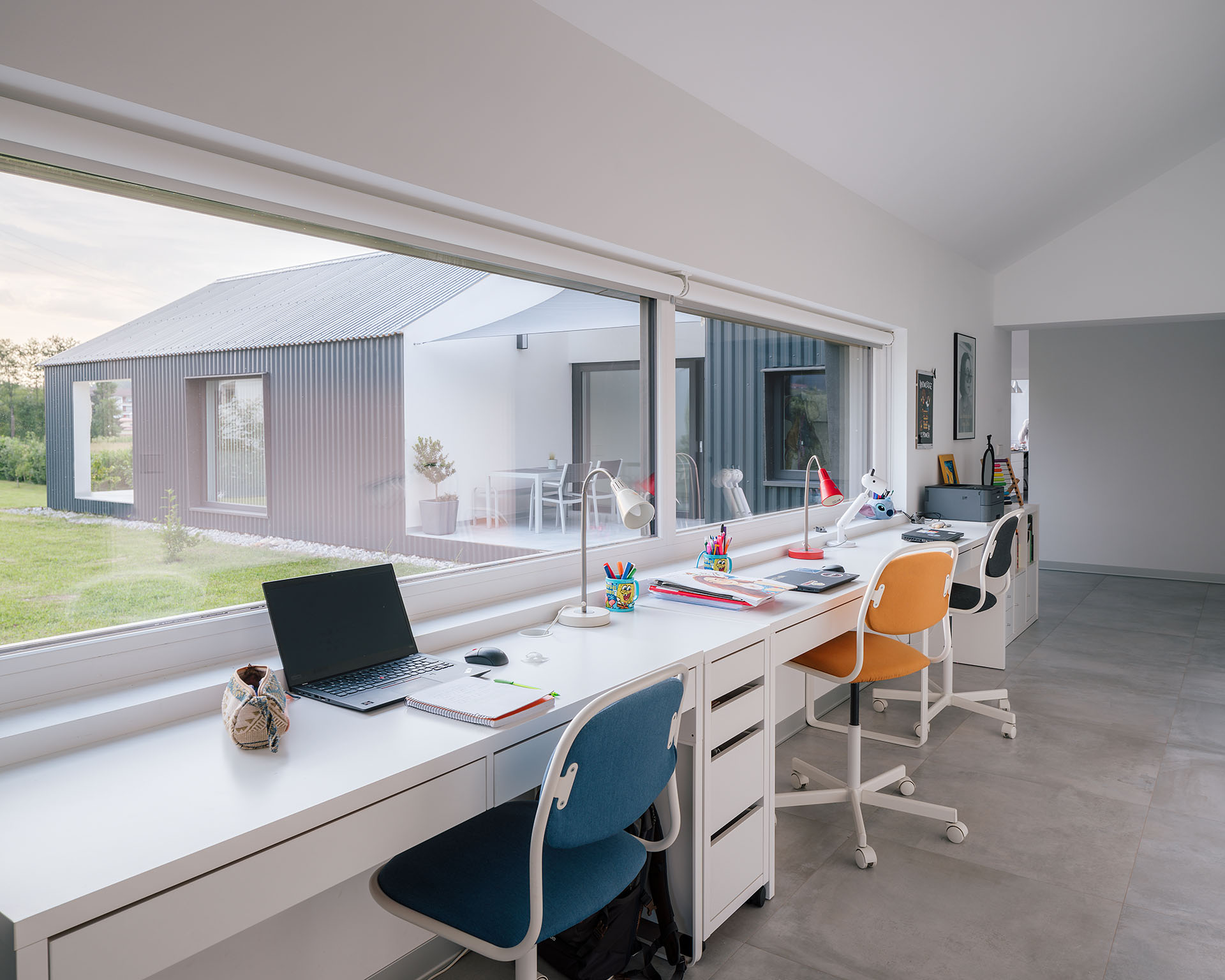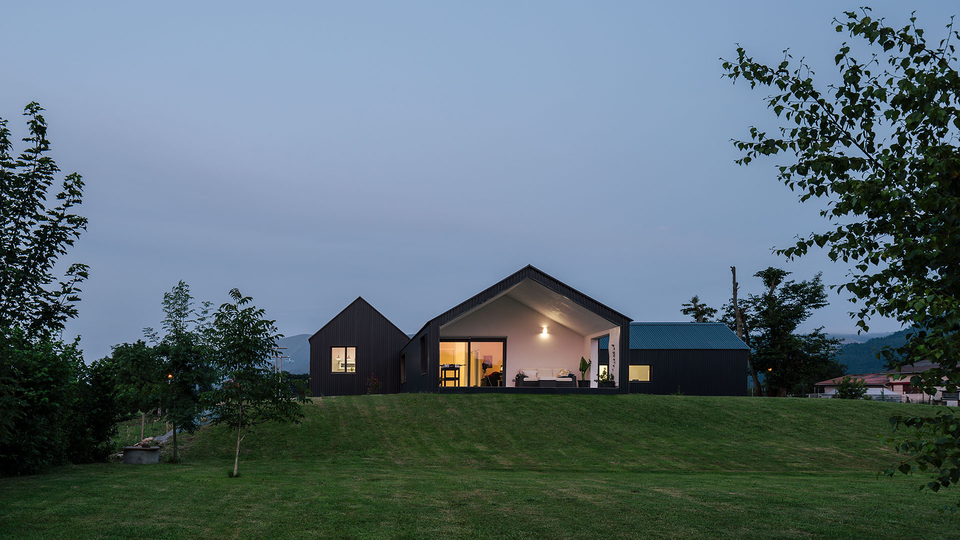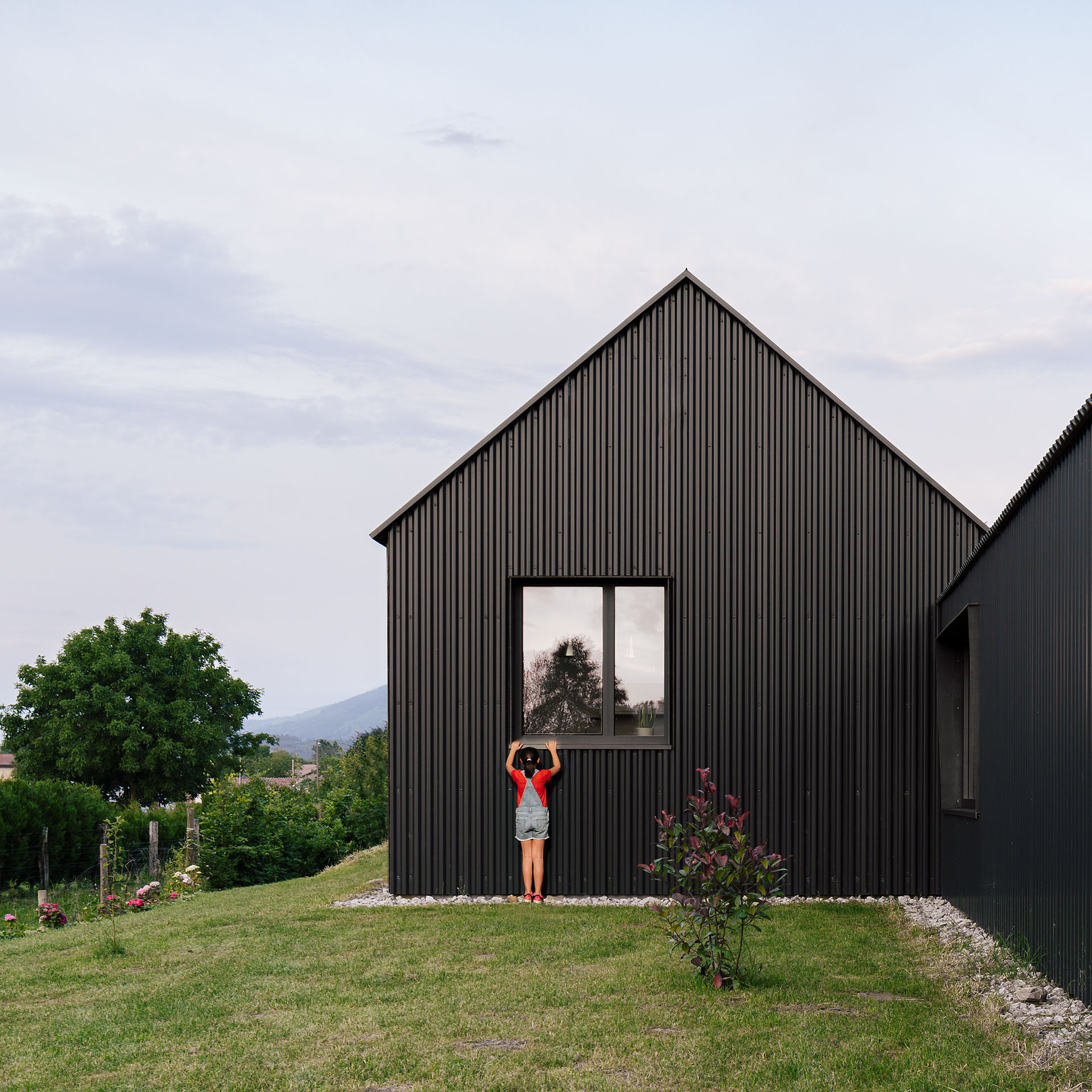 A nivel constructivo, se han empleado estructuras monolóticas de hormigón armado con alma de material aislante. Para la envolvente, un sistema de chapa grecada, tanto en cubierta como fachada, configura una solución capaz de minimizar el impacto en una vivienda poco compacta y garantiza una correcta durabilidad. Además de ser una solución con múltiples ventajas en cuanto a cuestiones económicas y técnicas, junto al volumen de garaje resuelto en metacrilato plegado, se consigue moldear una imagen que pretende dialogar con los invernaderos que colonizan las inmediaciones, así como las arquitecturas agrícolas que parecen estar destinadas a desaparecer. Con ello, también se pretende poner en valor este tipo de construcciones, pues no sólo replicando soluciones vernáculas se pueden proyectar nuevas construcciones que se integren correctamente en el entorno.